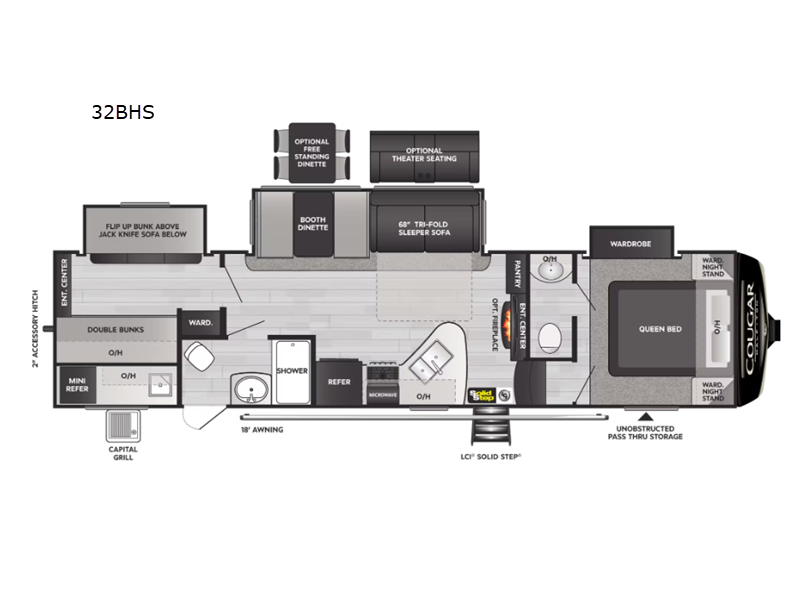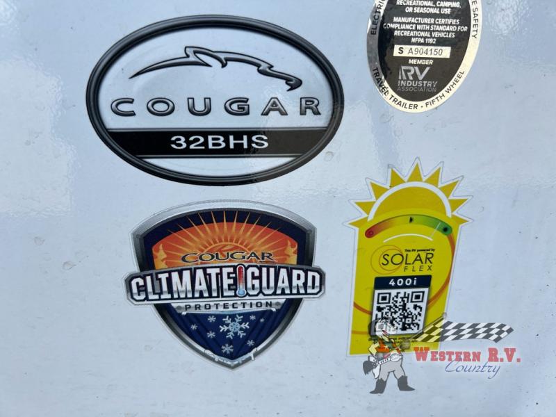 Weighing approximately 4,280 kilograms, the Cougar Half-Ton 32BHS is engineered for easy towing without compromising on stability or safety. Its robust construction and aerodynamic design ensure a smooth ride, while the advanced suspension system enhances handling on various terrains. Measuring 32 feet in length, this fifth wheel strikes the perfect balance between spaciousness and maneuverability, making it ideal for both seasoned RV enthusiasts and newcomers alike. Don't miss the opportunity to own this remarkable RV and embark on the journey of a lifetime. Contact us today to schedule a viewing and experience the 2023 Keystone RV Cougar Half-Ton 32BHS for yourself!
