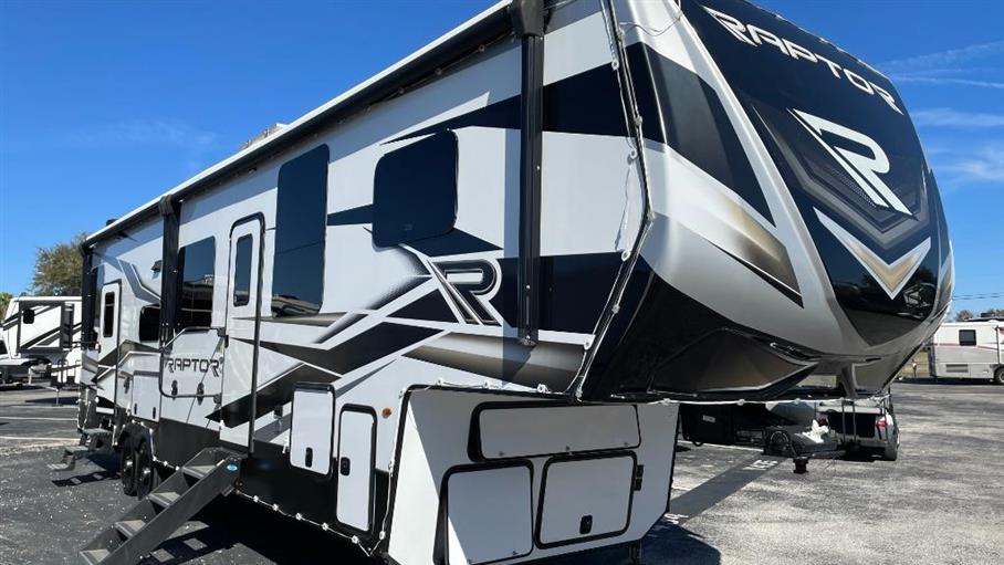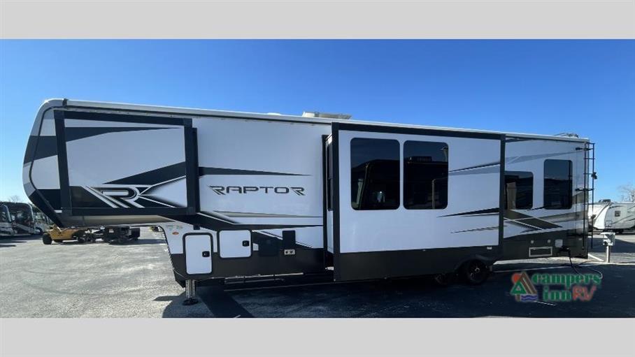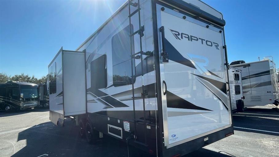 Discover the ultimate adventure companion with the 2023 Keystone RV Raptor 351 Fifth Wheel. This luxurious and spacious RV is designed for those who crave the thrill of the open road without sacrificing comfort. With its sleek design and modern amenities, the Raptor 351 is perfect for families or groups looking to explore the great outdoors in style. Measuring an impressive 39 feet in length, this RV offers ample space for relaxation and entertainment, ensuring that every journey is as enjoyable as the destination.