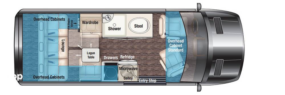 Inside, the MD2 Class B is thoughtfully designed to accommodate two people comfortably. The interior boasts a sophisticated layout with high-end finishes and modern amenities. The sleeping area is equipped with plush bedding, ensuring a restful night's sleep after a day of exploration. The RV also features a fully equipped kitchenette, complete with a refrigerator, microwave, and induction cooktop, allowing you to prepare meals with ease. The bathroom is designed with a shower, toilet, and sink, providing all the comforts of home while on the road.