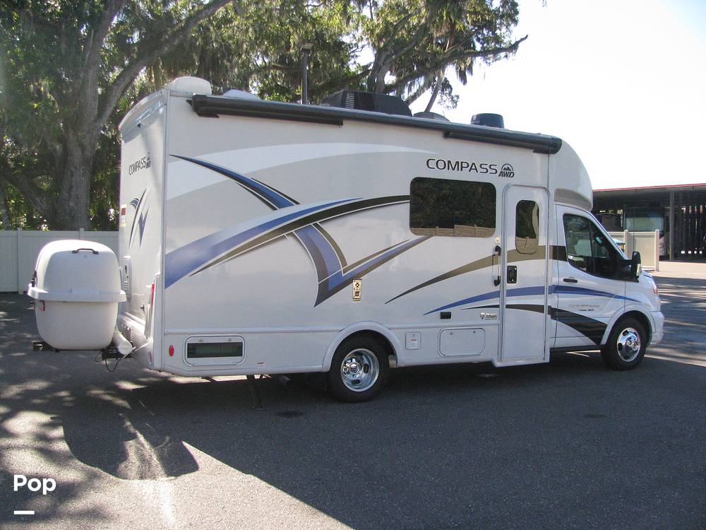 Inside, you'll find a thoughtfully designed living space that comfortably sleeps up to three people. The interior boasts modern amenities and a smart layout, ensuring you have everything you need for a comfortable stay. The cozy sleeping area, efficient kitchenette, and well-appointed bathroom make it feel like a home away from home. Whether you're whipping up a quick meal or settling in for a restful night's sleep, the Compass 23TW has you covered.
