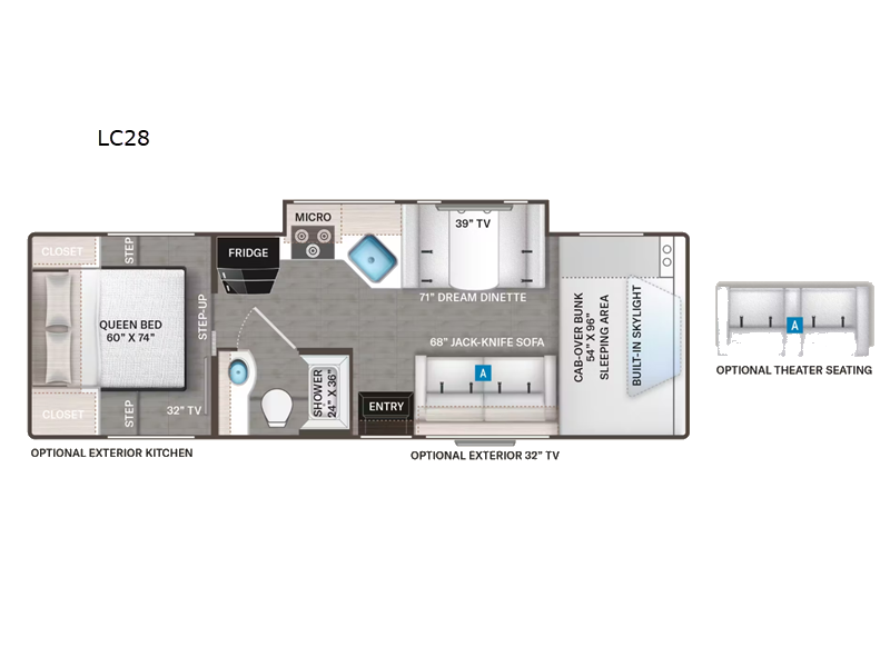 Measuring 25 feet in length, the Quantum LC28 offers a perfect balance of maneuverability and space. Its compact size allows for easy navigation through various terrains while still providing all the amenities needed for a comfortable stay. Whether you're planning a weekend getaway or an extended road trip, this RV is equipped to meet your needs with style and efficiency. Experience the freedom of the open road with the 2023 Thor Motor Coach Quantum LC LC28 Class C, where every journey becomes a memorable adventure.
