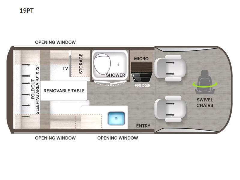 The Sanctuary Transit 19PT is built to accommodate two travelers comfortably, offering a cozy sleeping area that ensures restful nights after a day of exploration. The interior is thoughtfully designed with modern amenities, providing a functional kitchen, ample storage, and a well-equipped bathroom. Whether you're preparing a meal or unwinding after a long drive, this RV has everything you need to feel at home on the road.