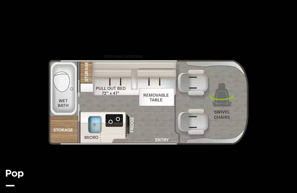 This RV is all about efficiency and convenience. With a fuel capacity of 91 liters, you can hit the road with confidence, knowing you have plenty of fuel for those long stretches between stops. At just 15 feet in length, the Scope 18M is easy to maneuver and park, making it ideal for both city streets and remote campsites. Despite its compact size, this RV is packed with features to make your travels comfortable and enjoyable.