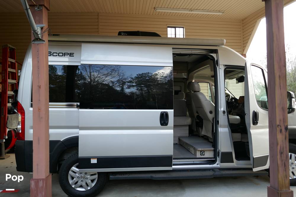 Inside, you'll find a well-designed living space that maximizes every inch. The interior is equipped with all the essentials, including a compact kitchenette, a cozy sleeping area, and a functional bathroom. Whether you're cooking up a meal or settling in for a good night's sleep, the Thor Motor Coach Scope 18M has you covered. So, pack your bags, grab your travel buddy, and hit the road in style with this fantastic RV!