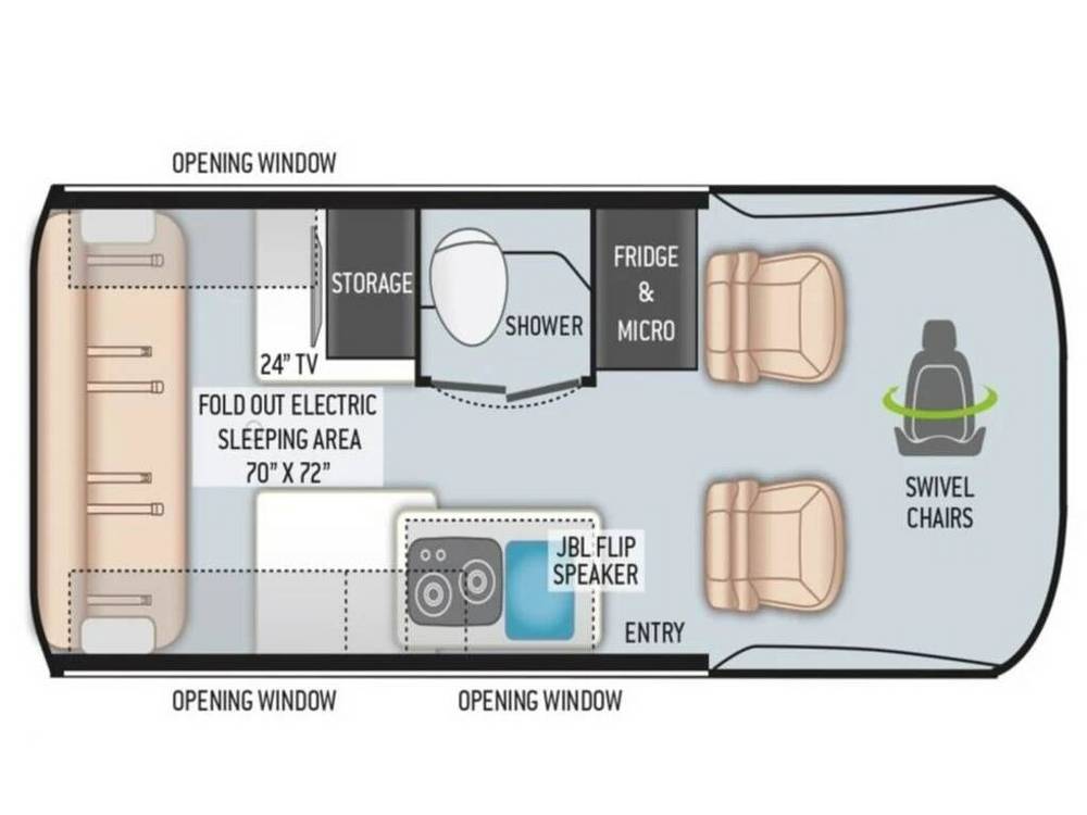Fuel efficiency is another highlight of this RV, with a fuel capacity of 117 liters, allowing you to travel further without frequent stops. Whether you're planning a weekend getaway or an extended road trip, the Thor Motor Coach Tranquility 19 PT is equipped to meet your needs. Embrace the spirit of adventure and create unforgettable memories with this versatile and reliable RV. It's not just a vehicle; it's your ticket to freedom and exploration.
