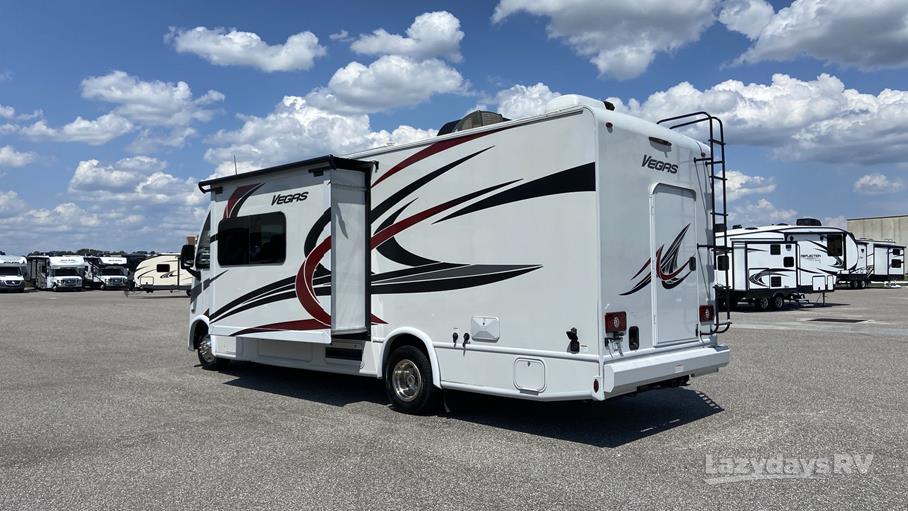 This Class A RV is engineered to accommodate up to four people comfortably, making it ideal for family trips or a getaway with friends. The thoughtfully designed floor plan includes a well-appointed kitchen, a cozy dining area, and a comfortable sleeping arrangement, ensuring that you have all the comforts of home on the road. The Vegas 25.7 is equipped with modern amenities and high-quality finishes, providing a luxurious experience whether you're parked at a campsite or exploring the open road.