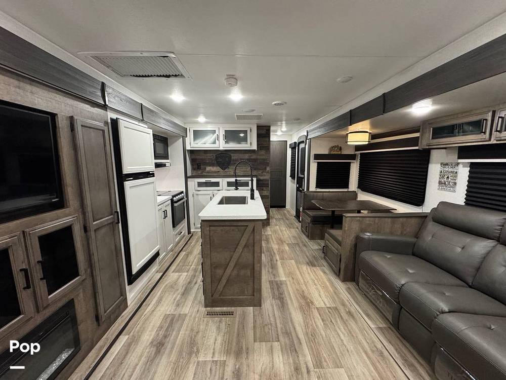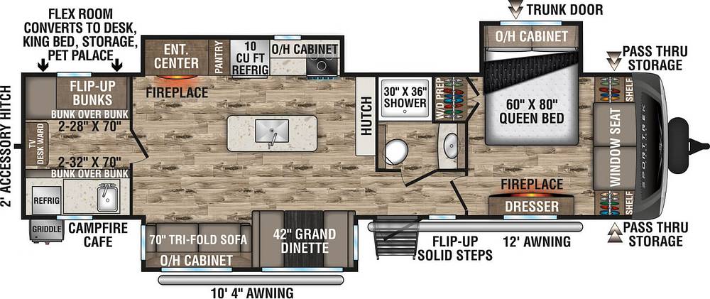 Measuring an impressive 32 feet in length, the SportTrek 343 VIB provides ample space for everyone to relax and enjoy. Inside, you'll find a well-appointed interior featuring a fully equipped kitchen with all the essentials, a cozy living area, and multiple sleeping arrangements to suit your needs. The thoughtful layout ensures that everyone has their own space, while the high-quality finishes and attention to detail create a warm and inviting atmosphere.
