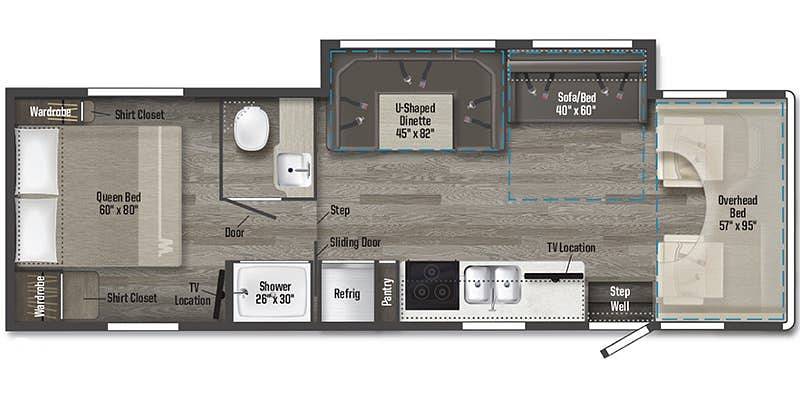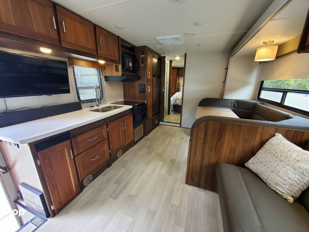 Measuring 27 feet in length, this RV offers ample space for everyone to relax and enjoy. Inside, you'll find a well-appointed interior featuring a fully equipped kitchen, a cozy dinette, and a comfortable living area. The sleeping arrangements are thoughtfully designed, with a queen-sized bed, a convertible sofa, a dinette bed, and a spacious overhead bunk. Whether you're cooking up a meal or settling in for a movie night, the Minnie Winnie provides all the comforts of home.
