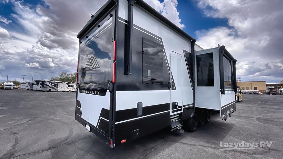 Measuring a generous 31 feet in length, the Brinkley Z3100 G3500 is designed for comfort and convenience. The bedroom offers a cozy retreat with a queen-sized bed and plenty of storage for all your travel essentials. The bathroom is equally impressive, with a spacious shower and all the amenities you'd expect from a luxury RV. Plus, with its sleek exterior and top-notch build quality, this fifth wheel is as stylish as it is functional. Ready to hit the road? The Brinkley Z3100 G3500 is ready to take you there in style and comfort!