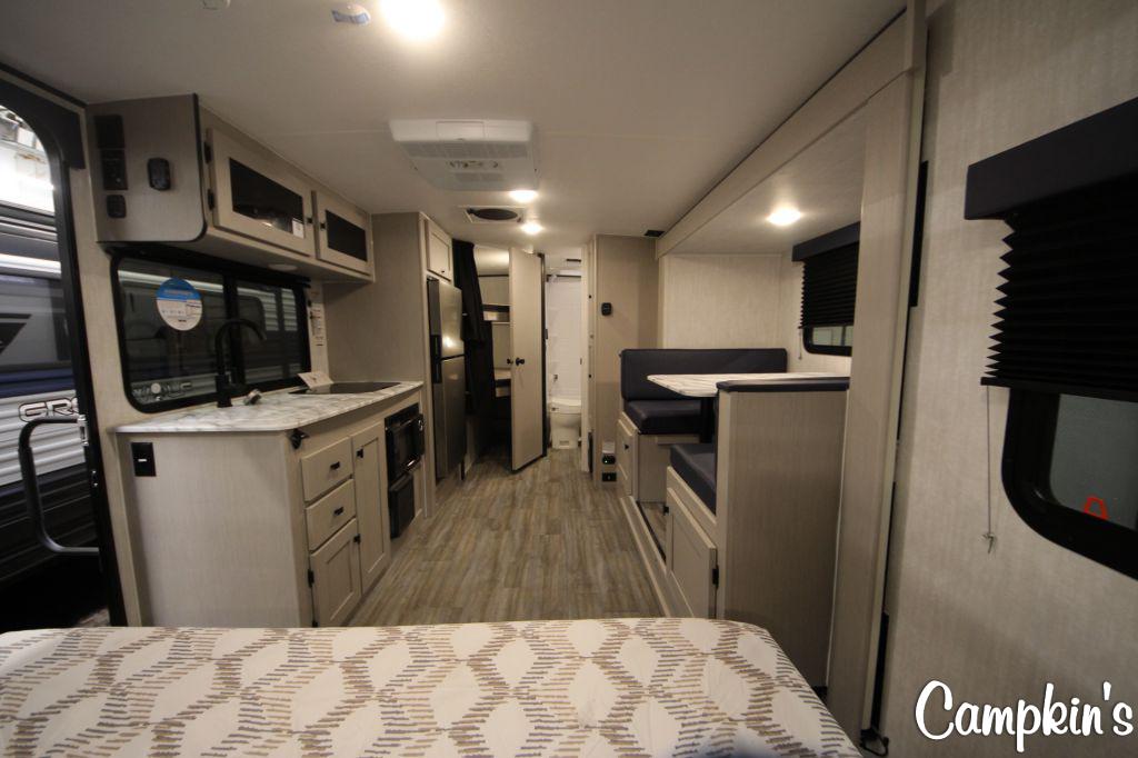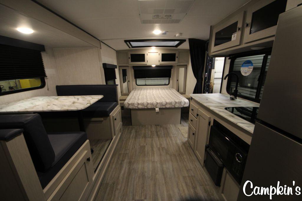 Awning , Heating, Air Conditioning Unit(s), Battery Tray, AC/DC Converter, Day Night Shades, Dual Wheels, Fantastic Fan, Fully Furnished, Hide A Bed, Island Bed, LPG Detector, Microwave, Monitor Panel, Outside Shower, Sky Light(s), Smoke Detector, Spare with Carrier, Toilet Facilities, Back-Up Camera Prep, Bluetooth, Front Cap, LED lights, Outdoor Kitchen, Outside Speakers, Pantry