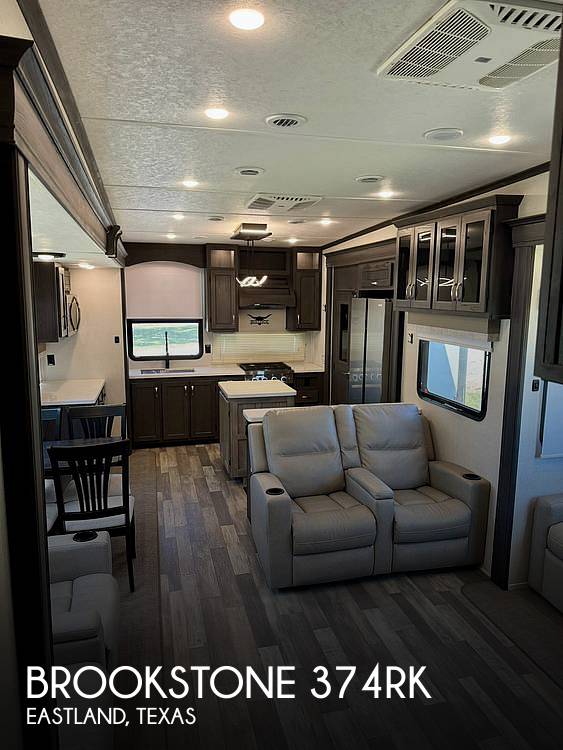 Inside, the Brookstone 374RK comfortably accommodates up to four guests, ensuring a restful night's sleep for all. The interior is thoughtfully designed with high-quality materials and finishes, creating a warm and inviting atmosphere. The spacious living area is perfect for socializing or unwinding after a day of exploration, featuring plush seating and state-of-the-art entertainment options. The well-appointed kitchen is equipped with modern appliances, providing everything needed to prepare delicious meals on the road.