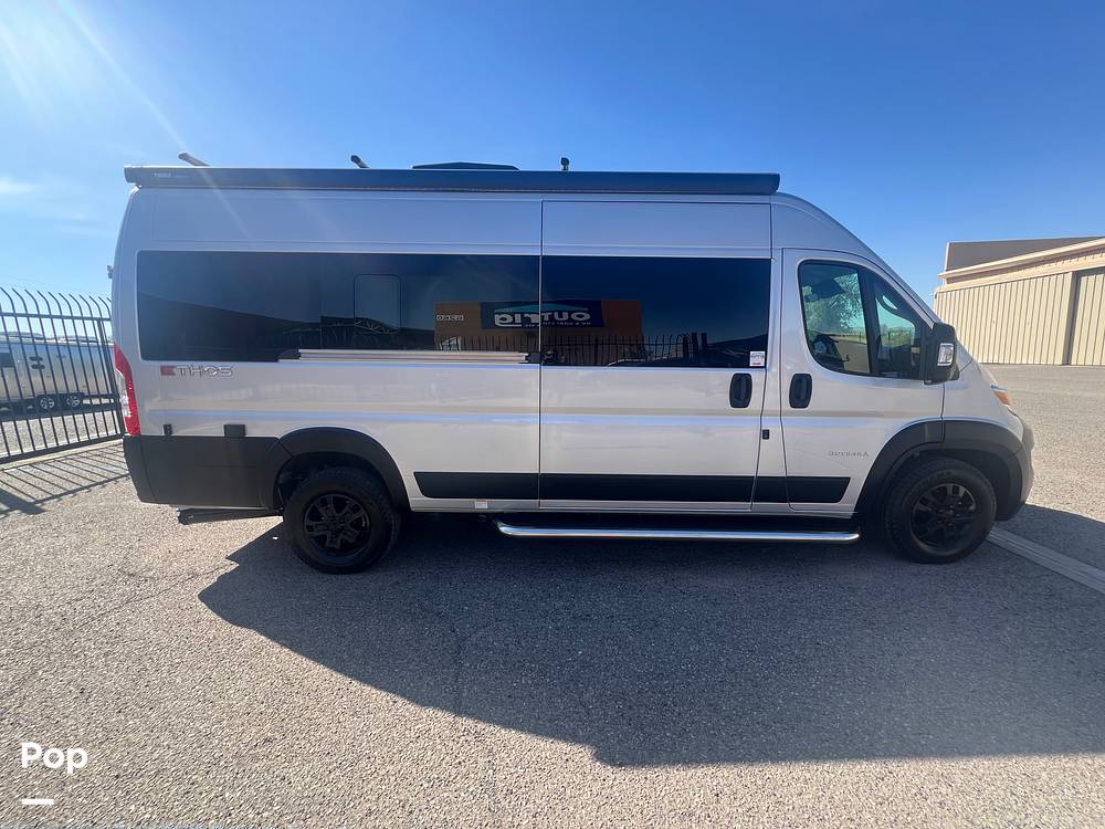 Inside, you'll find a thoughtfully designed living space that comfortably sleeps two. The interior is equipped with top-of-the-line amenities, including a fully functional kitchenette with a refrigerator, microwave, and two-burner cooktop, allowing you to prepare meals with ease. The cozy sleeping area ensures restful nights, while the modern bathroom facilities provide all the comforts of home. Ample storage solutions are integrated throughout the RV, ensuring you have plenty of space for your travel essentials.