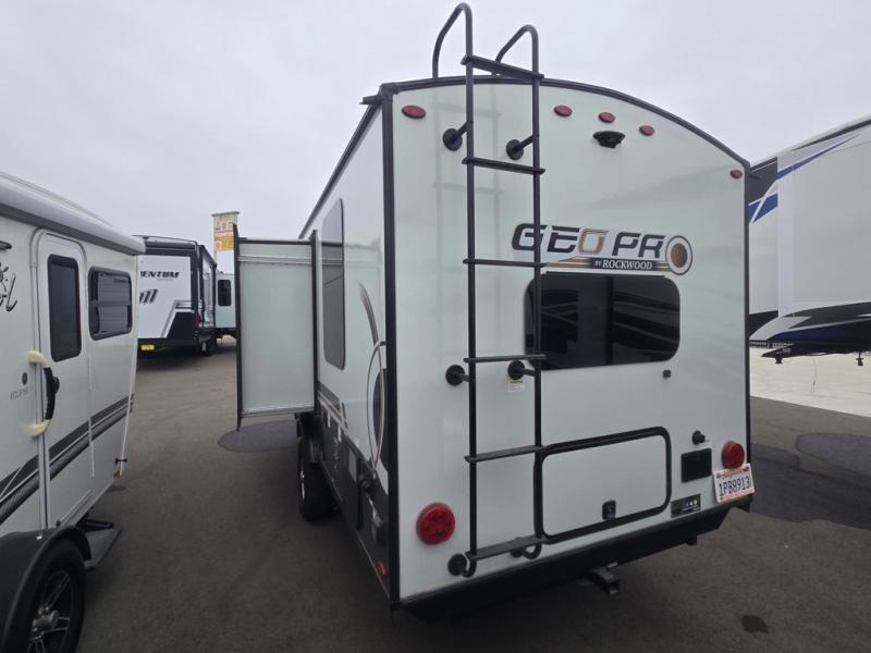 Built with quality and convenience in mind, the Rockwood GEO Pro G20FKS includes a range of premium features such as solar panel pre-wiring, a 12-volt TV, and a Bluetooth stereo system. The exterior is designed for durability and ease of use, featuring an awning for outdoor relaxation and ample storage compartments for all your gear. Whether you're a seasoned traveler or new to the RV lifestyle, this travel trailer offers everything you need for memorable journeys. Don't miss the opportunity to own this versatile and stylish RV, ready to take you wherever the road leads.