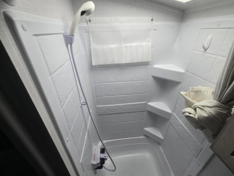 Step inside to discover a thoughtfully designed interior that maximizes every centimeter of space. The G20FKS features a front kitchen layout equipped with modern appliances, including a two-burner cooktop, microwave, and a refrigerator, ensuring you have everything you need to prepare meals on the go. The cozy dinette area comfortably seats four and can be converted into an additional sleeping space, complementing the main queen-sized bed. Enjoy the convenience of a full bathroom with a shower, sink, and toilet, providing all the comforts of home.