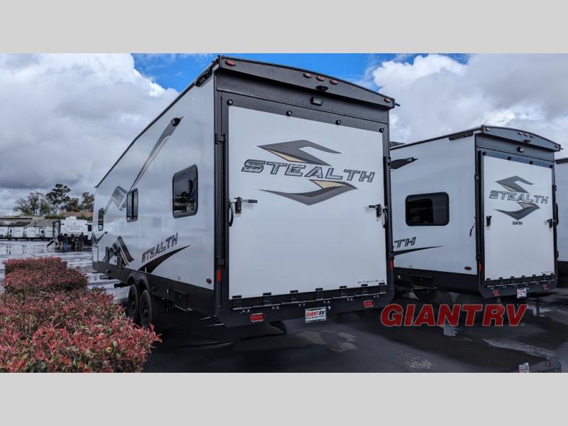 Inside, the Stealth 2750SLX comfortably sleeps up to four people, making it ideal for family trips or outings with friends. The well-designed layout includes a cozy sleeping area, a fully equipped kitchen, and a functional bathroom, ensuring you have all the comforts of home on the road. The toy hauler section is perfect for transporting your favorite outdoor toys, whether it's ATVs, dirt bikes, or other gear, allowing you to explore new terrains with ease.