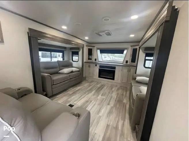 The 2024 Forest River Sandpiper 3990FL is not just about luxury; it is built with practicality in mind. The robust construction and high-quality materials ensure durability and longevity, while the advanced climate control system guarantees comfort in any weather. With its sleek exterior and thoughtful design, this fifth wheel is as visually impressive as it is functional. Whether you're embarking on a cross-country adventure or a weekend getaway, the Sandpiper 3990FL promises an exceptional RV experience, combining the freedom of the open road with the comforts of home.
