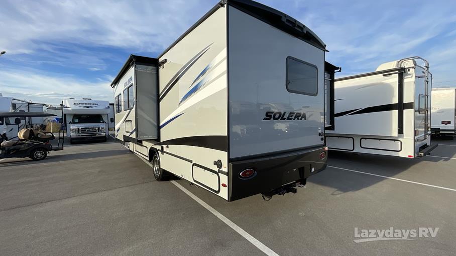The Solera 27DSE features two slide-outs, expanding the living space to provide a roomy and comfortable interior. Designed to sleep up to six people, it’s perfect for family trips or getaways with friends. The well-appointed kitchen comes equipped with modern appliances, ensuring you can prepare meals with ease. The cozy dinette and inviting living area offer ample space to relax and enjoy your time on the road.