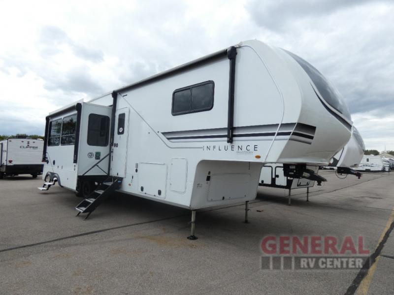 Discover the ultimate in luxury and comfort with the 2024 Grand Design Influence 3704BH Fifth Wheel, a masterpiece of modern RV design. This stunning fifth wheel is perfect for families or groups who crave adventure without sacrificing the comforts of home. With its impressive four slide-outs, this RV offers an expansive living space that transforms your travel experience into a lavish retreat. Measuring approximately 33 feet in length, the Influence 3704BH is expertly designed to maximize space and functionality, ensuring every journey is as enjoyable as the destination.