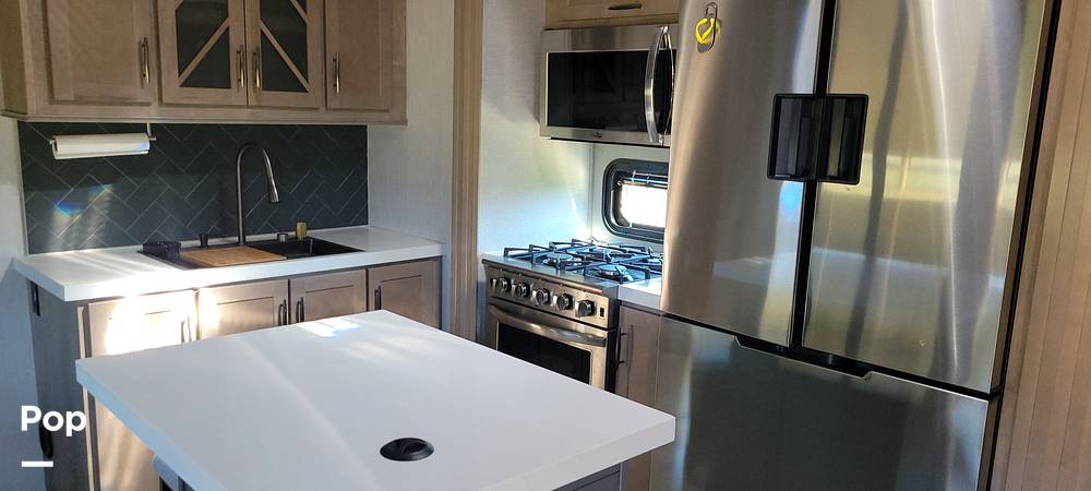 At 34 feet long, the Momentum 349-M offers plenty of space to stretch out and relax. Inside, you'll find a cozy living area that's perfect for movie nights or just chilling after a day of exploring. The kitchen is fully equipped with modern appliances, so you can whip up your favorite meals just like at home. And with a spacious bathroom, you'll never feel cramped or uncomfortable.