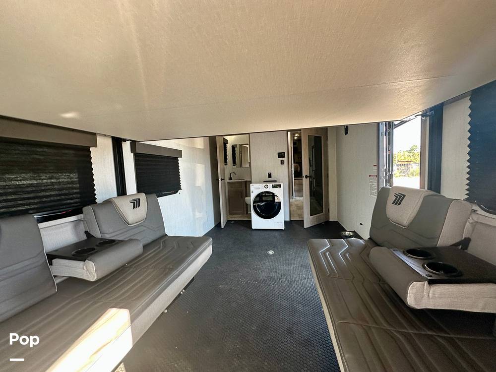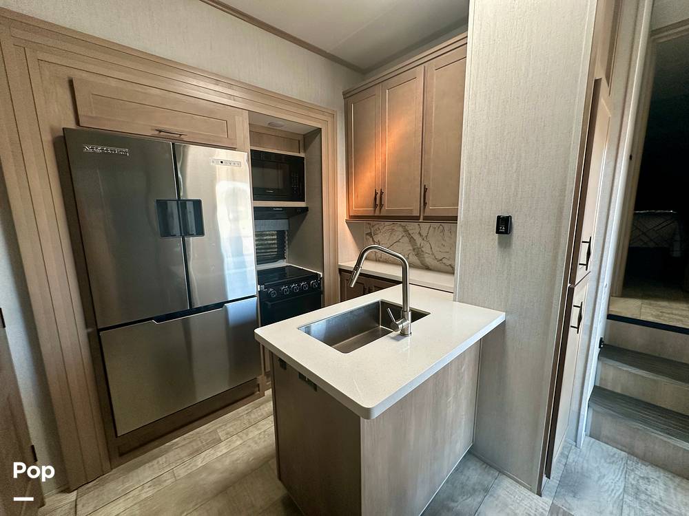 Outside, the Momentum G-Class 350G continues to impress with its robust construction and sleek design. Whether you're planning a weekend getaway or an extended road trip, this fifth wheel is equipped to handle it all. With ample storage space, you can bring along all your gear and essentials, ensuring you're ready for any adventure. Don't miss the opportunity to own this exceptional RV and create unforgettable memories with family and friends. Your journey begins with the 2024 Grand Design Momentum G-Class 350G!