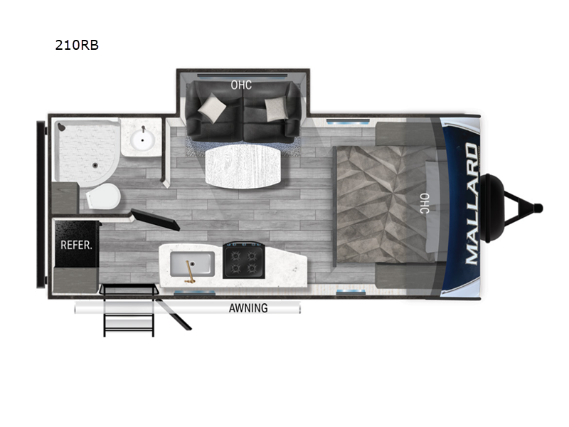 The Mallard 210RB features one convenient slide-out, expanding your living space to give you room to relax and unwind. Whether you're planning a romantic getaway or a family trip, this travel trailer comfortably sleeps up to four people, making it ideal for couples or small families. The thoughtful design includes a cozy sleeping area, a fully-equipped kitchen, and a modern bathroom, ensuring you have everything you need on the road.