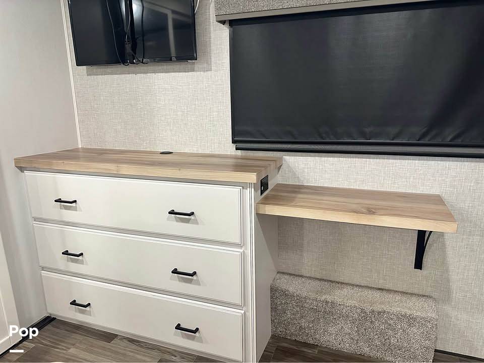 Measuring an impressive 36 feet in length, the Open Range 395BHS provides ample space for relaxation and entertainment. The thoughtfully designed floor plan includes a master suite, a cozy bunkhouse, and a convertible living area, ensuring everyone has their own space to unwind. The modern kitchen is equipped with top-of-the-line appliances, making meal preparation a breeze, while the elegant dining area invites you to enjoy your culinary creations in style. The luxurious bathroom facilities offer all the conveniences you need, ensuring a comfortable and refreshing experience on the road.