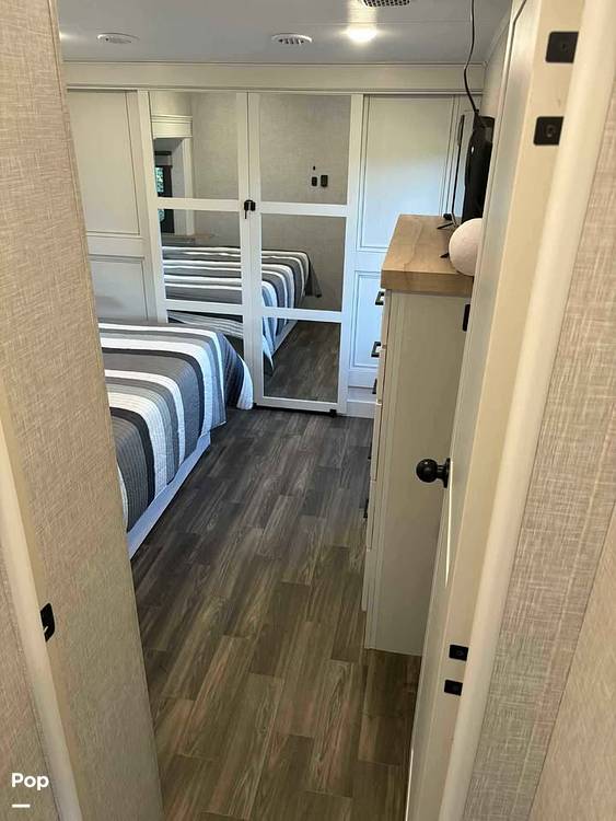 Inside, you'll find a cozy living area with all the comforts of home. The kitchen is fully equipped with modern appliances, making it easy to whip up your favorite meals on the road. The sleeping arrangements are versatile and comfortable, ensuring everyone has their own space to unwind. Plus, the stylish interior design adds a touch of luxury to your travels.