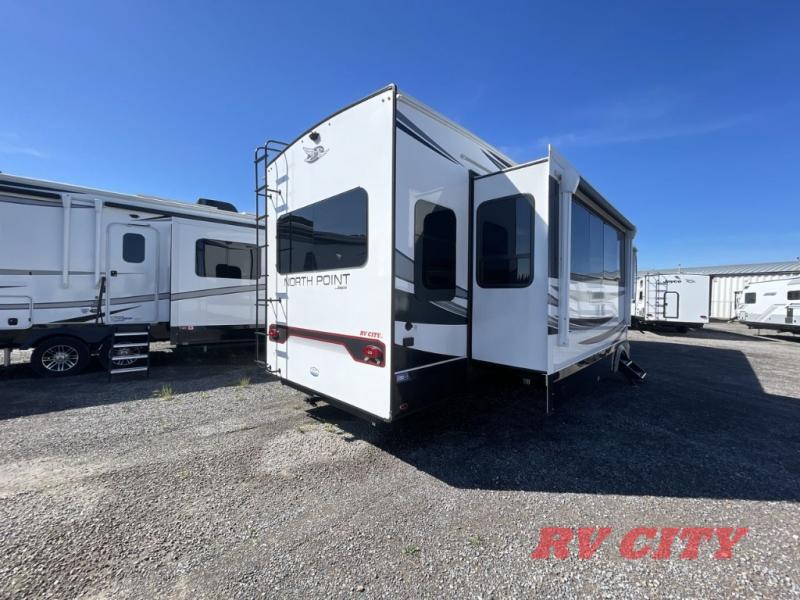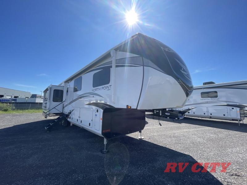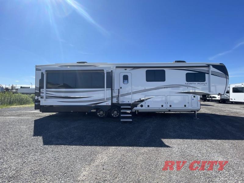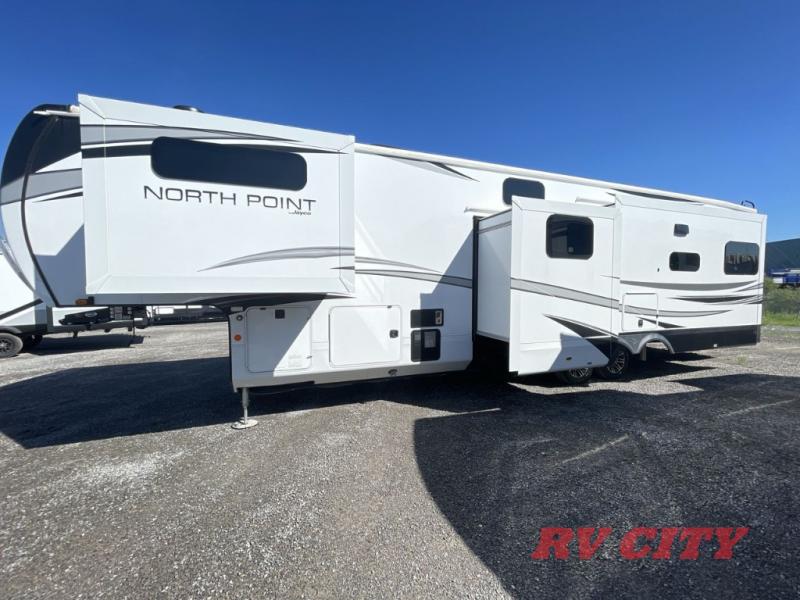 Discover the ultimate in comfort and adventure with the 2024 Jayco North Point 377RLBH Fifth Wheel! This luxurious RV is perfect for families or groups, offering ample space and top-notch amenities to make every journey unforgettable. With four spacious slide-outs, this RV expands to provide a roomy and inviting interior, ensuring everyone has their own space to relax and unwind.