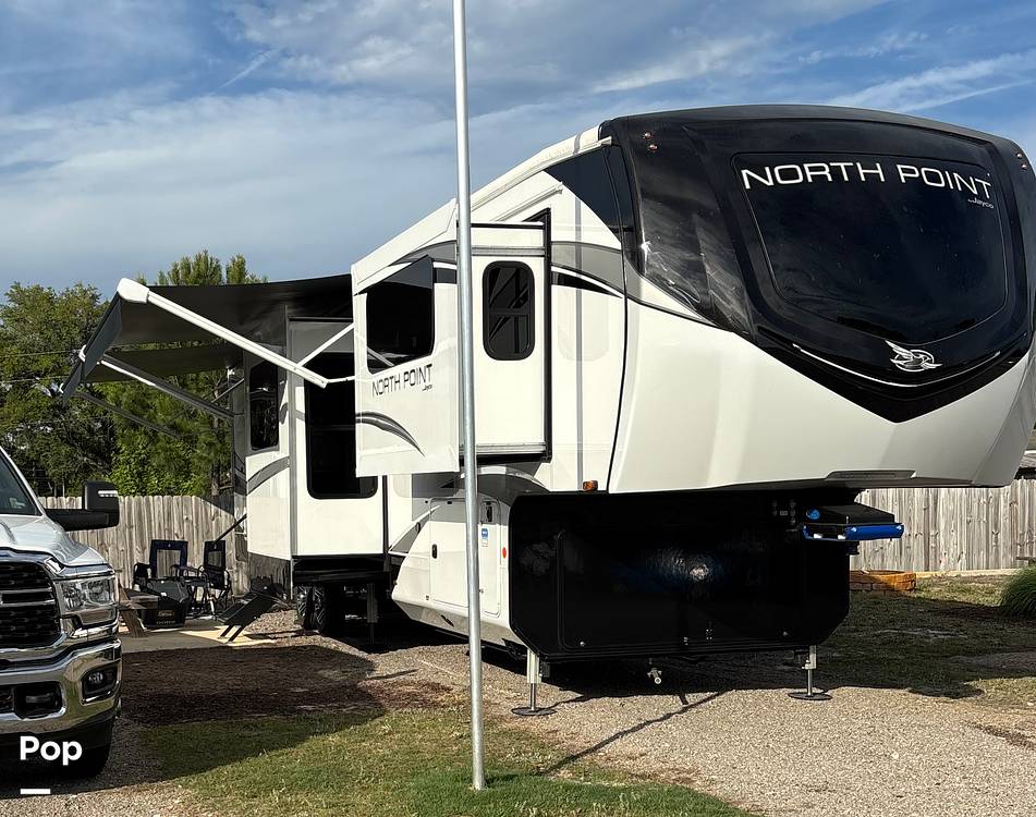 Introducing the 2024 Jayco North Point 382 FLRB Fifth Wheel, a luxurious and spacious RV designed to elevate your travel experiences. With a length of 37 feet, this fifth wheel offers ample space and comfort for families or groups, accommodating up to 8 people with ease. Whether you're planning a weekend getaway or an extended road trip, this RV provides the perfect blend of style, functionality, and convenience.
