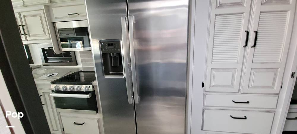 Step inside and be greeted by a beautifully appointed interior that combines modern amenities with a cozy atmosphere. The spacious living area features plush seating, a fully equipped kitchen with top-of-the-line appliances, and a dining area where you can enjoy meals together. The sleeping arrangements are equally impressive, with a comfortable queen-sized bed in the master suite and additional sleeping options in the convertible sofa and overhead bunk. Every detail has been thoughtfully designed to ensure a restful night's sleep after a day of exploration.