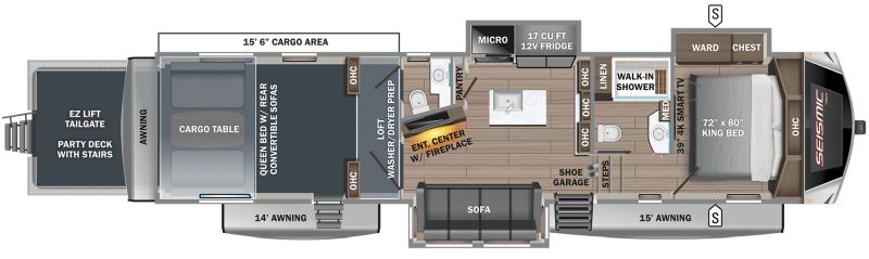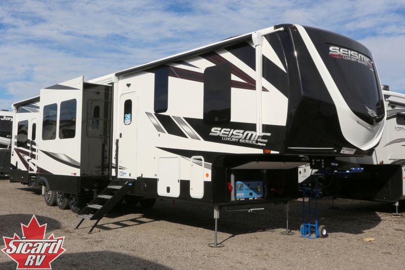 The 2024 Seismic Luxury 3815, by Jayco, has a spacious living area. This toy hauler fifth wheel features a power lift bunk in the cargo bay, a fireplace & sleeps up to 8 people. All Seismics are backed with a 2 year manufacturer limited factory warranty. Start enjoying everything the RV lifestyle has to offer with a new RV from Sicard RV.Specifications:VIN: 1UJCGSCV7R19V0052