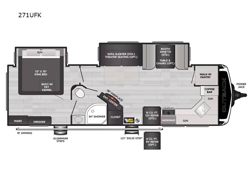 The Keystone Outback Ultra-Lite is not just about the interiors; it’s built for the road with its lightweight design that makes towing a breeze. Plus, with plenty of storage options, you can bring along all your gear and essentials without a hitch. Whether you're heading to the mountains, the beach, or anywhere in between, this travel trailer is ready to make your journey unforgettable. So, pack your bags, gather your crew, and hit the road in style with the 2024 Keystone Outback Ultra-Lite 271UFK!