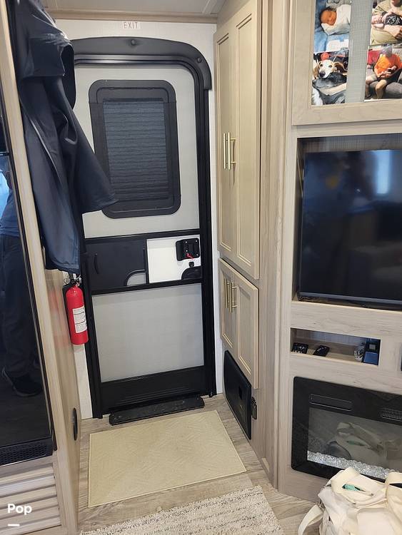 Inside, you'll find a cozy setup that comfortably sleeps up to 5 people, making it ideal for family getaways or trips with friends. The smart layout maximizes space, featuring a well-equipped kitchen with modern appliances, a comfy dinette for meals or game nights, and a relaxing living area where you can unwind after a day of exploring. The bathroom is thoughtfully designed with all the essentials, ensuring you have everything you need while on the go.