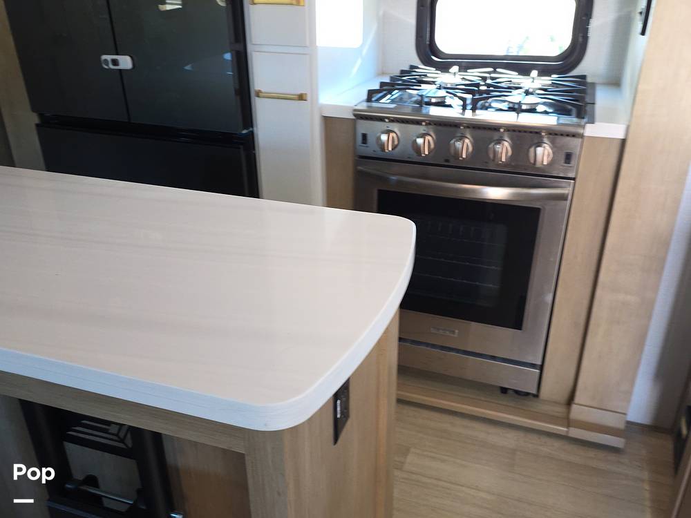 Step inside to discover a thoughtfully designed interior that seamlessly blends style with practicality. The spacious living area is adorned with premium furnishings and state-of-the-art amenities, ensuring a home-like atmosphere on the road. The well-appointed kitchen features modern appliances and ample storage, allowing you to prepare gourmet meals with ease. The sleeping arrangements are equally impressive, with a master suite, convertible sofas, and bunk beds, ensuring restful nights for everyone on board.