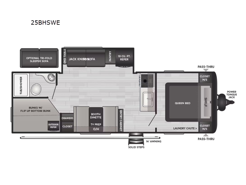 Inside, the Hideout 25BHSWE is thoughtfully designed to sleep up to eight people comfortably, making it ideal for family trips or group adventures. The intelligently designed floor plan includes cozy sleeping arrangements, a fully-equipped kitchen, and a welcoming living area, ensuring that everyone has their own space to unwind. The modern amenities and high-quality finishes create a home-like atmosphere, allowing you to enjoy the great outdoors without sacrificing comfort.