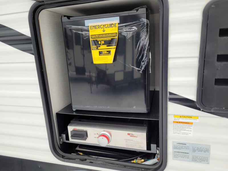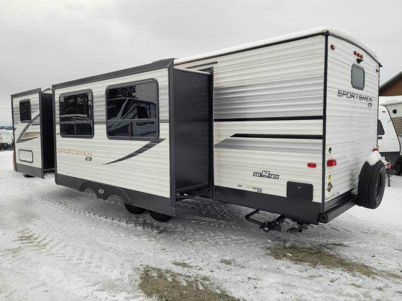 The exterior of the KZ Sportsmen 292RBKSE is equally impressive, featuring durable construction and a sleek design. With a weight of approximately 3,500 kilograms, this travel trailer is engineered for stability and ease of towing. The inclusion of an outdoor kitchen and awning enhances your outdoor living experience, making it perfect for enjoying nature while having all the comforts of home at your fingertips. Whether you're planning a weekend getaway or an extended road trip, the 2024 KZ Sportsmen 292RBKSE Travel Trailer is your ideal companion, offering a seamless blend of style, comfort, and practicality.