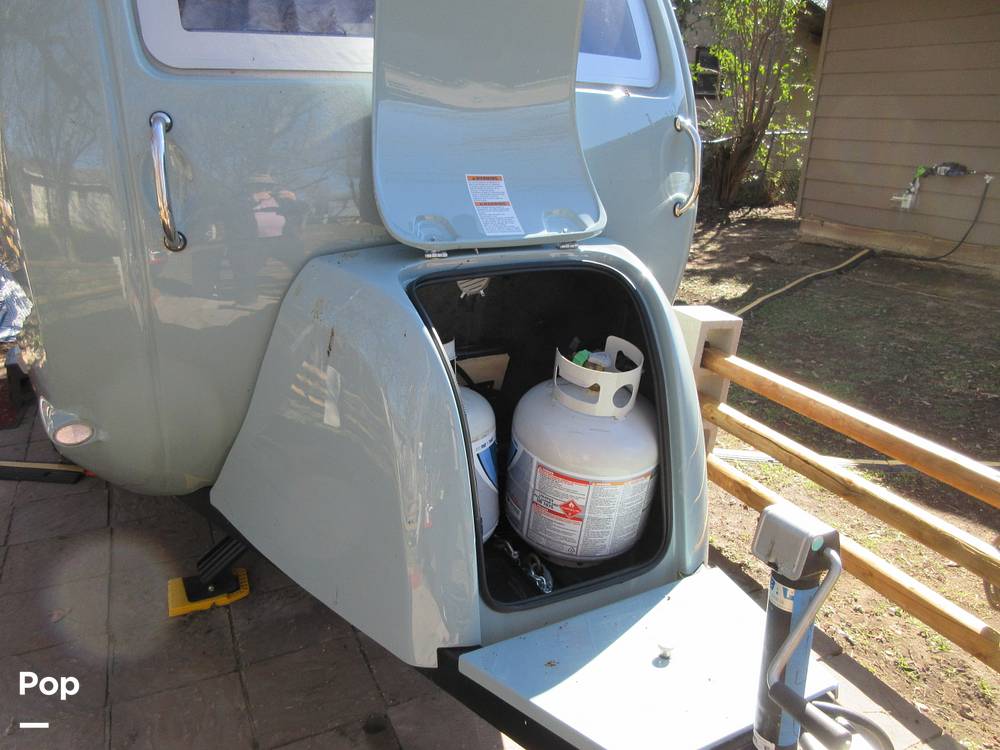 Step inside to find a thoughtfully designed interior that maximizes space and comfort. The Barefoot features a stylish and functional layout, complete with a well-equipped kitchenette, a comfortable seating area, and a spacious sleeping space. The modern amenities ensure you have everything you need for a relaxing getaway, including ample storage, a compact refrigerator, and a two-burner stove. The interior design combines retro charm with contemporary convenience, creating a unique and inviting atmosphere.