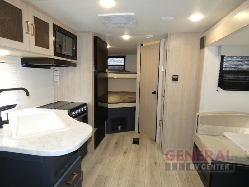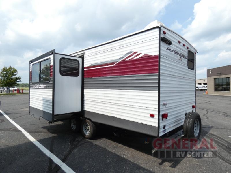 The Avenger LE 24BHSLE features one convenient slide-out, expanding your living area to provide extra room for relaxation and entertainment. Inside, you'll find a well-appointed interior with thoughtful amenities designed for comfort and convenience. The sleeping arrangements include a cozy queen bed, bunk beds, and convertible dinette and sofa beds, ensuring everyone has a comfortable place to rest after a day of adventure.