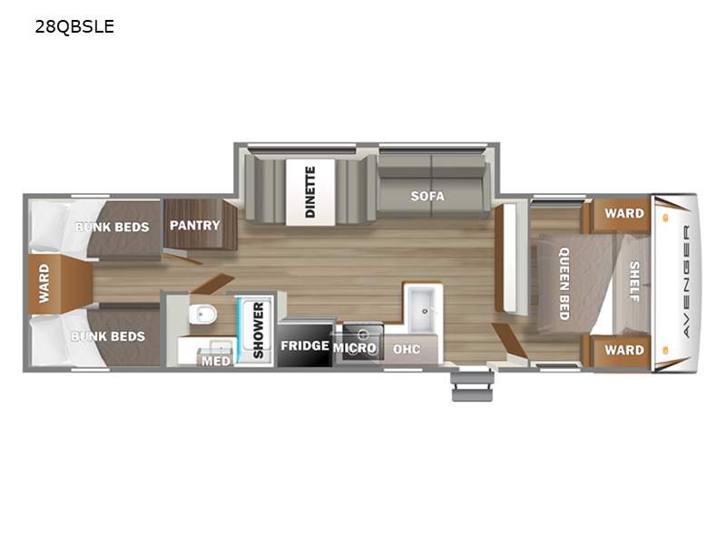 This RV is all about making life on the road easy and enjoyable. Whether you're parked at a campsite or exploring off the beaten path, the Avenger LE 28QBSLE is ready to provide a home away from home. So pack your bags, gather your crew, and hit the road in style and comfort. Adventure awaits with this fantastic travel trailer!