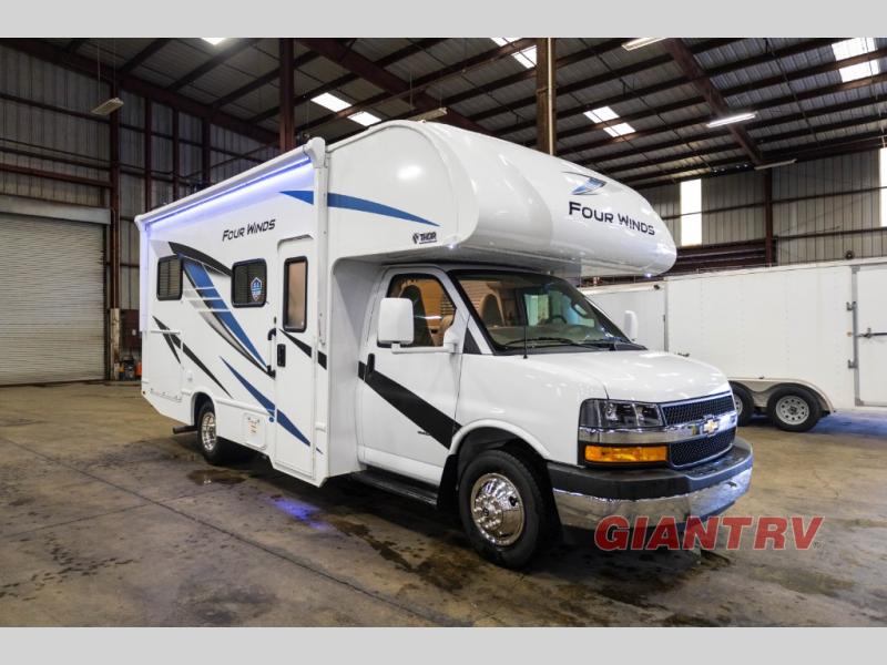 Inside, you'll find a thoughtfully designed interior that maximizes space and functionality. Whether you're cooking up a meal in the fully-equipped kitchen, relaxing in the comfortable seating area, or getting a good night's sleep, this RV has everything you need for a memorable trip. Don't miss the opportunity to own this fantastic 2024 Thor Motor Coach Four Winds 22E and start your next adventure today!
