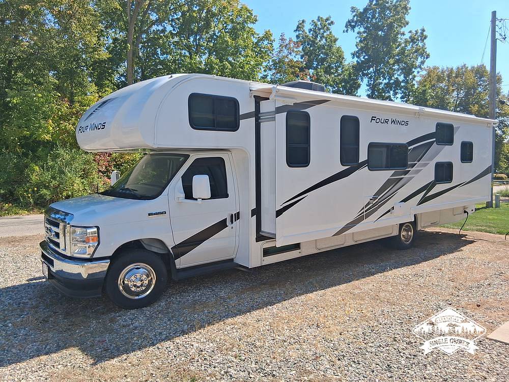 Measuring a spacious 26 feet in length, this RV is designed to maximize every inch of space. Inside, you'll find a well-thought-out layout that includes a fully equipped kitchen, a comfortable living area, and plenty of storage for all your gear. The kitchen comes with all the essentials, so you can whip up your favorite meals on the go. Plus, the living area is perfect for relaxing, with ample seating and a TV for entertainment. The Four Winds EV31 is all about making life on the road as enjoyable as possible.