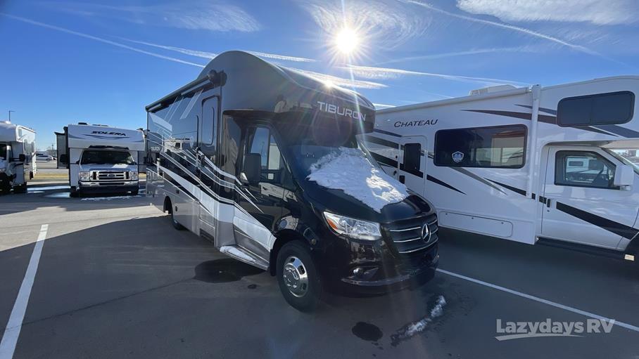 This RV features a thoughtfully designed layout with one slide-out, maximizing interior space without compromising on comfort. Measuring 21 feet in length, the Tiburon Sprinter is compact enough for easy maneuverability while still providing ample living space. Inside, you'll find accommodations to comfortably sleep four, making it an ideal choice for family adventures or trips with friends. The interior is crafted with high-quality materials, offering a blend of style and functionality that enhances your travel experience.