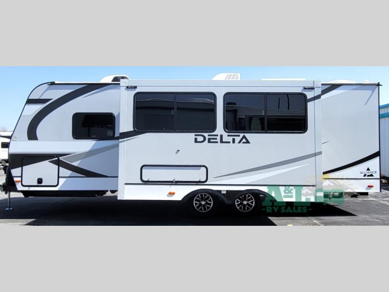 The Delta 262RB features one strategically designed slide-out, enhancing the living area to create a spacious and inviting environment. Inside, it comfortably accommodates up to four people, making it perfect for small families or couples seeking a luxurious escape. The intelligently designed floor plan maximizes space, offering a cozy sleeping area, a fully equipped kitchen, and a well-appointed bathroom, ensuring all the comforts of home are at your fingertips.