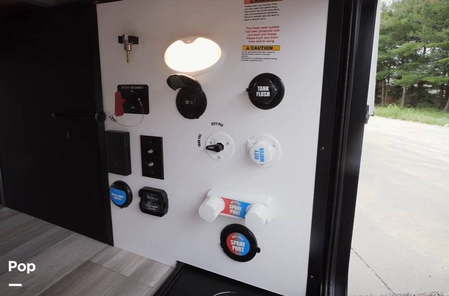 Step inside to find a thoughtfully designed interior that maximizes every square meter. The living area is a welcoming haven, featuring plush seating and a state-of-the-art entertainment system, perfect for relaxing after a day of exploration. The kitchen is equipped with top-of-the-line appliances, including a refrigerator, stove, and microwave, ensuring you can whip up your favorite meals no matter where you are. The dining area comfortably seats four, making it easy to enjoy meals together or plan your next adventure.