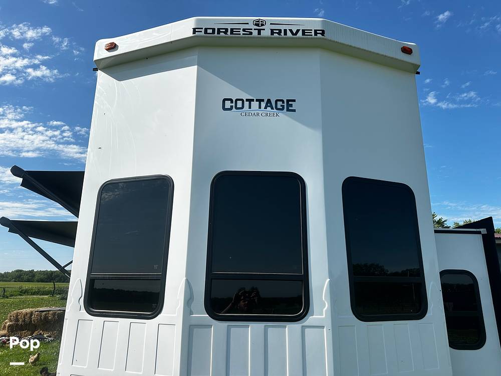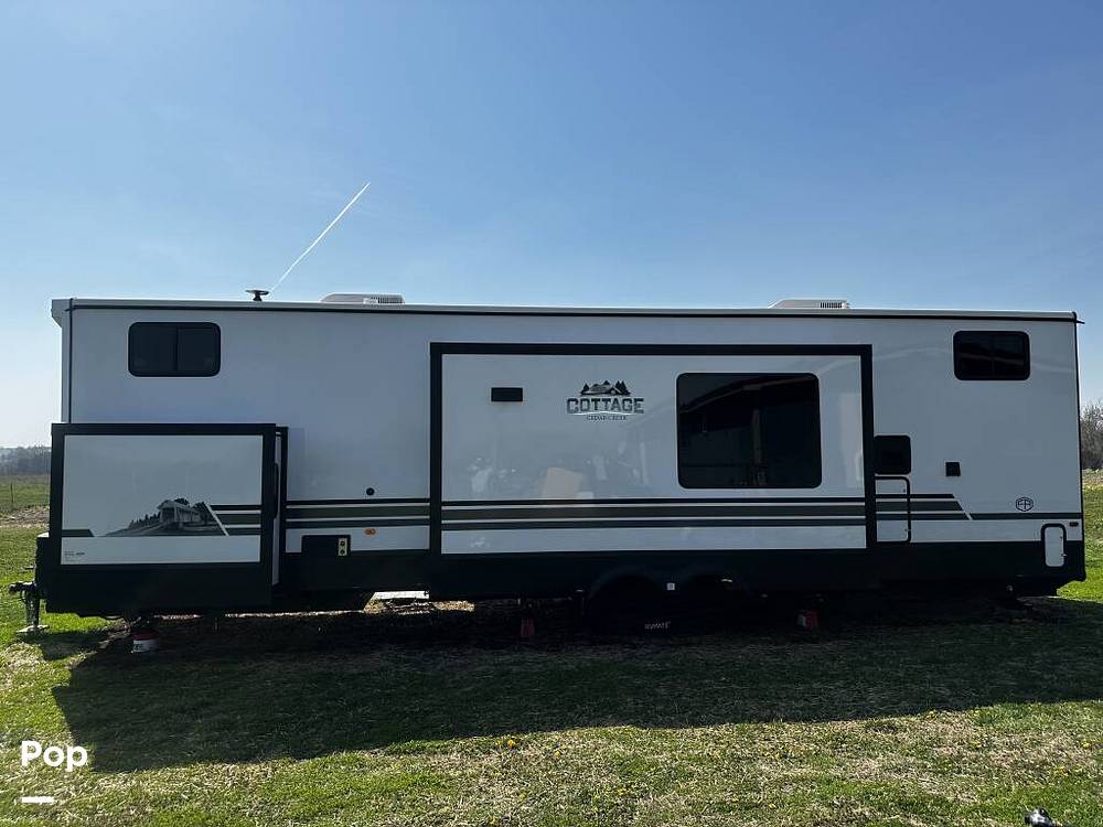 Introducing the 2025 Forest River Cedar Creek Cottage 40CBK Travel Trailer, a luxurious and spacious haven designed for those who seek comfort and elegance on the road. This exquisite travel trailer, measuring an impressive 35 feet in length, offers a perfect blend of style and functionality, making it an ideal choice for families and groups. With the ability to comfortably sleep up to eight people, this model ensures that everyone can enjoy a restful night's sleep after a day of adventure.