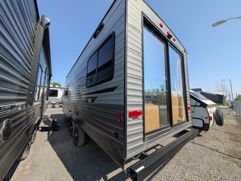 Step inside and you'll find a cozy living area that’s perfect for relaxing after a day of exploring. The smart layout maximizes space, offering a comfy sleeping area, a fully-equipped kitchen, and a snug dining nook. Whether you're whipping up a quick meal or settling in for a movie night, this trailer has got you covered. The modern amenities and stylish finishes make it feel like a chic apartment on wheels.