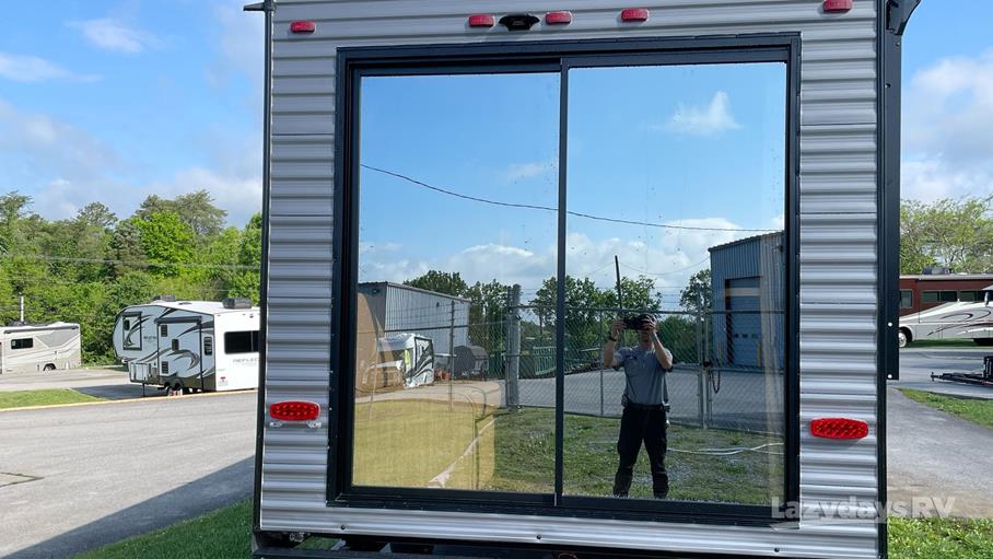 Step inside to discover a thoughtfully designed interior that maximizes space and comfort. The living area features a cozy seating arrangement, perfect for unwinding after a day of adventure. The fully-equipped kitchen includes a refrigerator, microwave, and stove, ensuring you can prepare your favorite meals with ease. The dining area comfortably accommodates your family or friends, making it ideal for shared meals and game nights. The sleeping quarters offer a restful retreat, with a plush queen-sized bed and ample storage space for all your belongings.