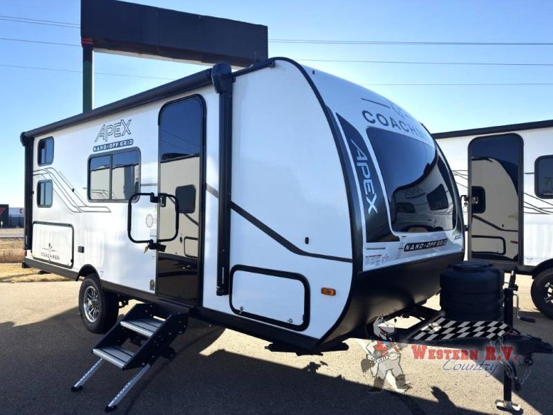 Measuring 20 feet in length, this travel trailer is compact enough to fit into most campsites while still offering ample living space. The exterior boasts durable construction with sleek, aerodynamic lines, ensuring both style and efficiency on the road. Additional features include a power awning for shaded outdoor relaxation, ample storage compartments for all your gear, and energy-efficient LED lighting throughout. Whether you're planning a weekend getaway or an extended road trip, the 2025 Coachmen RV Apex Nano 186BH is your ticket to adventure, comfort, and lasting memories.