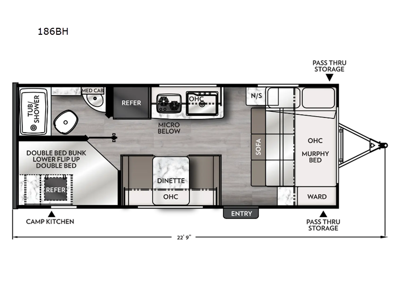 Weighing approximately 1,646 kilograms, the Apex Nano 186BH is lightweight and easy to tow, making it a breeze to navigate through various terrains. Its smart design includes a cozy bunkhouse, a convertible dinette, and a queen-sized bed, ensuring everyone has a comfortable place to rest after a day of adventure. The interior is thoughtfully laid out to maximize space, featuring modern amenities like a fully equipped kitchenette with a refrigerator, microwave, and stovetop, so you can whip up your favorite meals on the go.