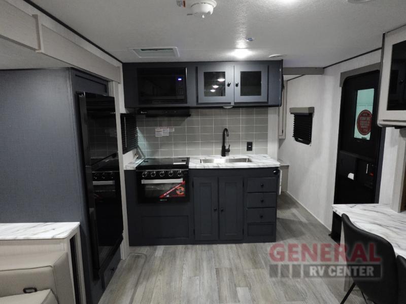 Step inside to find a thoughtfully designed interior featuring one slide-out that expands your living space, creating a welcoming atmosphere for relaxation. The RV comfortably sleeps two, making it ideal for couples or solo travelers seeking a peaceful getaway. The well-appointed kitchen is equipped with all the essentials, allowing you to whip up your favorite meals on the go. Ample storage solutions ensure you have plenty of room for all your travel necessities, keeping your space organized and clutter-free.